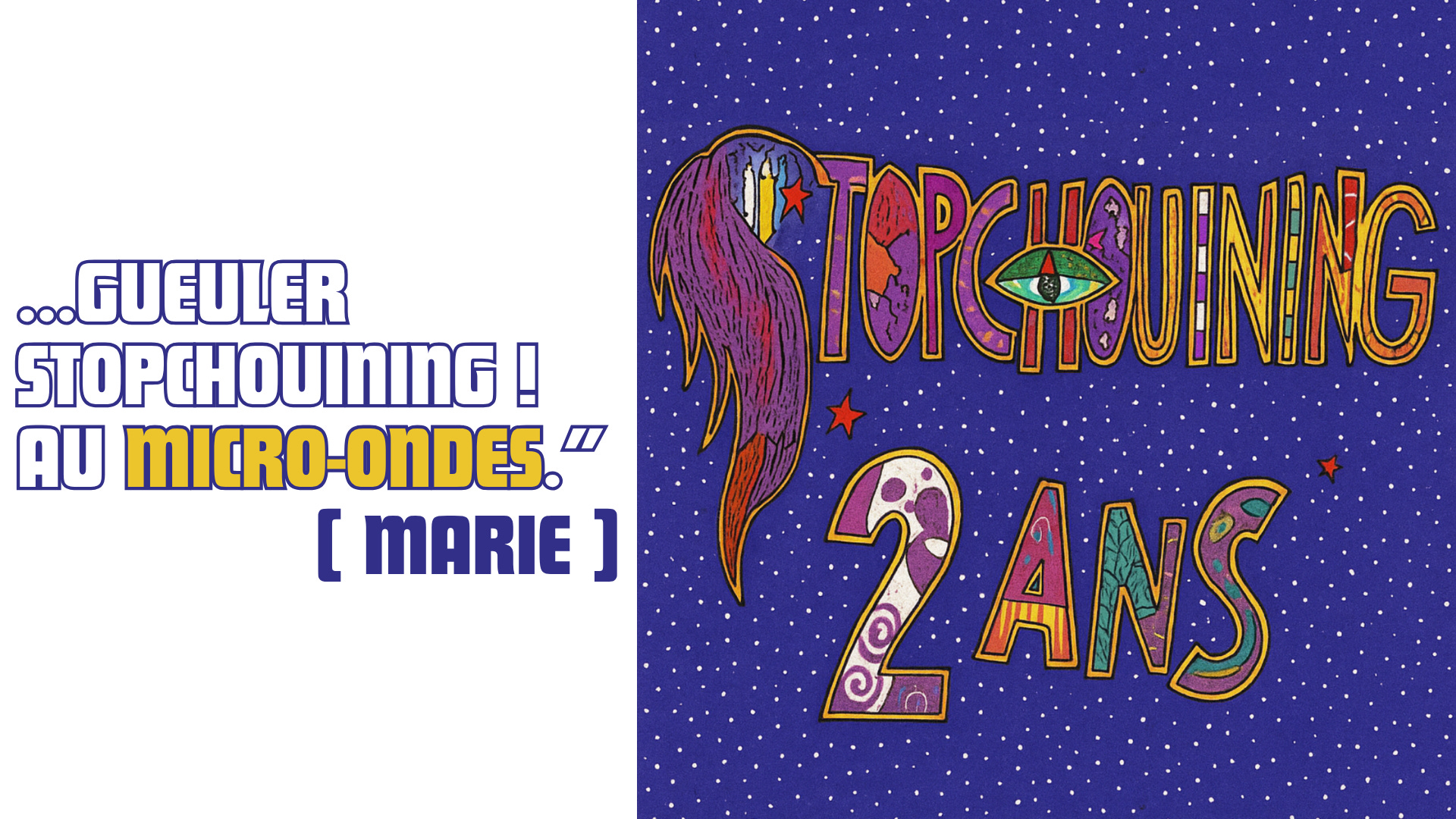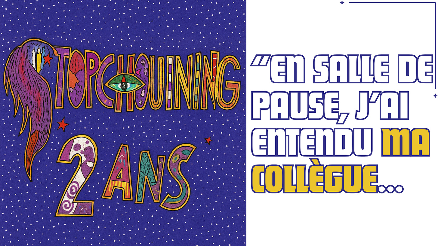 Putain, 2 ans, ça me rappelle une réplique des Guignols. Happy birthday Stopchouining !